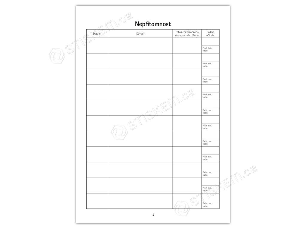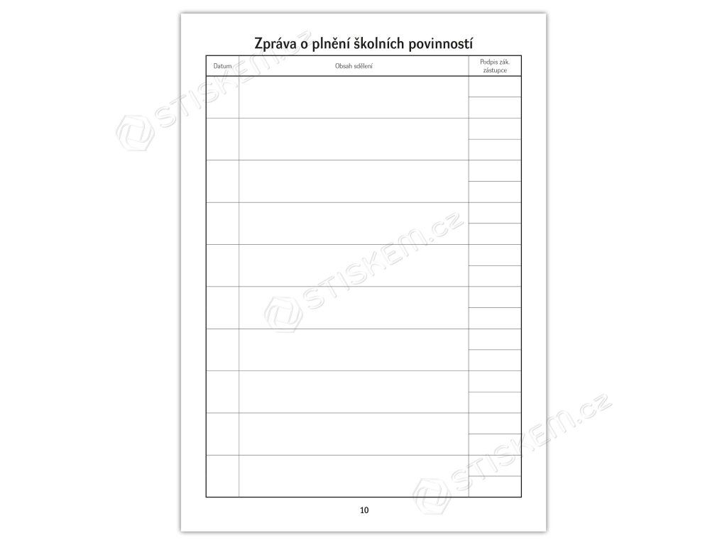 Zprávy o studiu: 5 stran určených pro zprávy o plnění školních povinností.