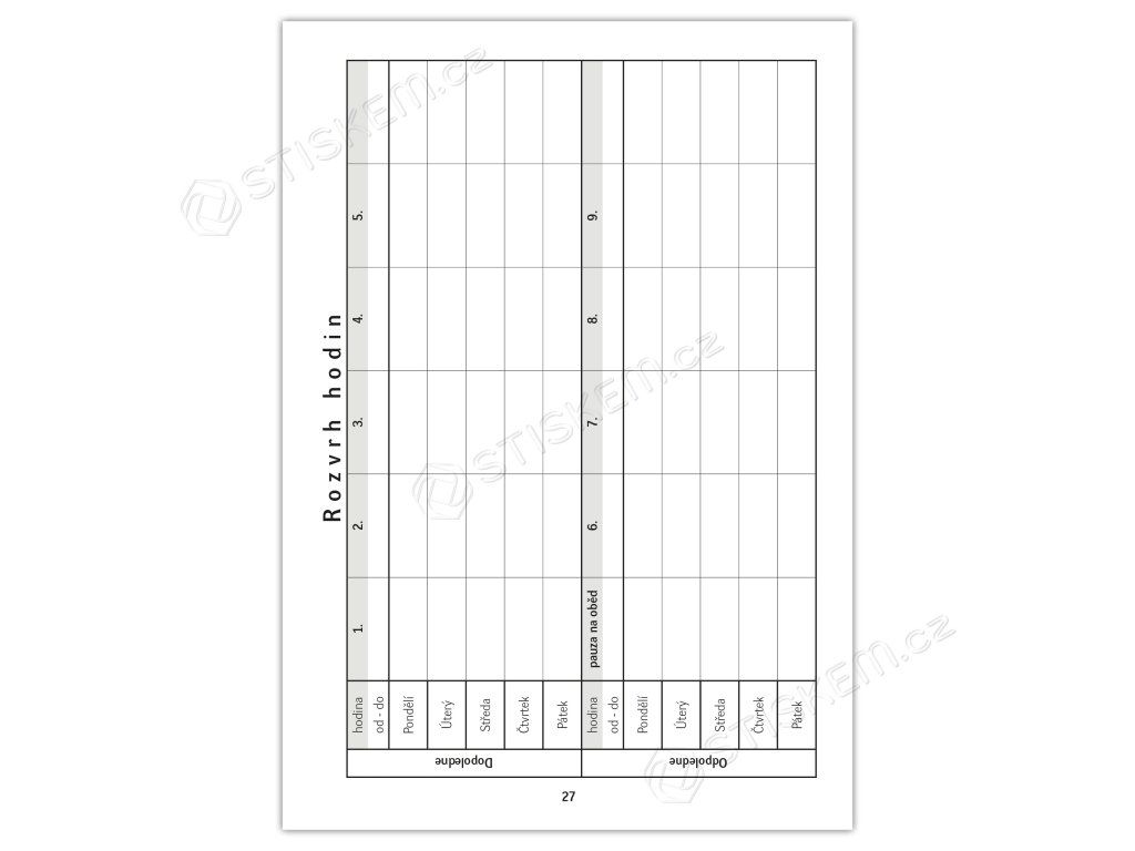 Rozvrh hodin: Praktické rozvržení pro dopolední i odpolední vyučování.